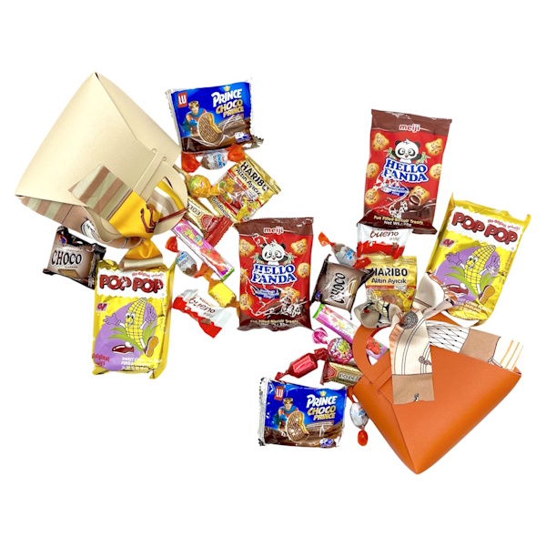 صينية كبيرة جميلة مع 6 حقائب صغيرة من القرقيعان.